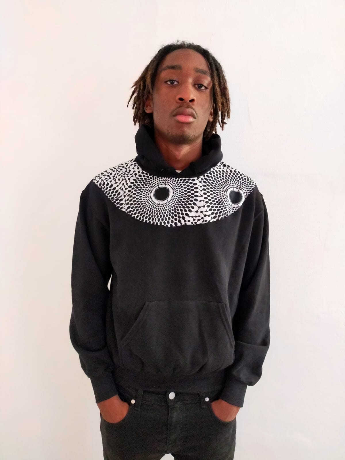 Sweat Shirt à Capuche, Manche Longues, Coton, Femmes, Hommes, Couleur Noire, Imprimer Africain. Lavage, Lavable en Machine.