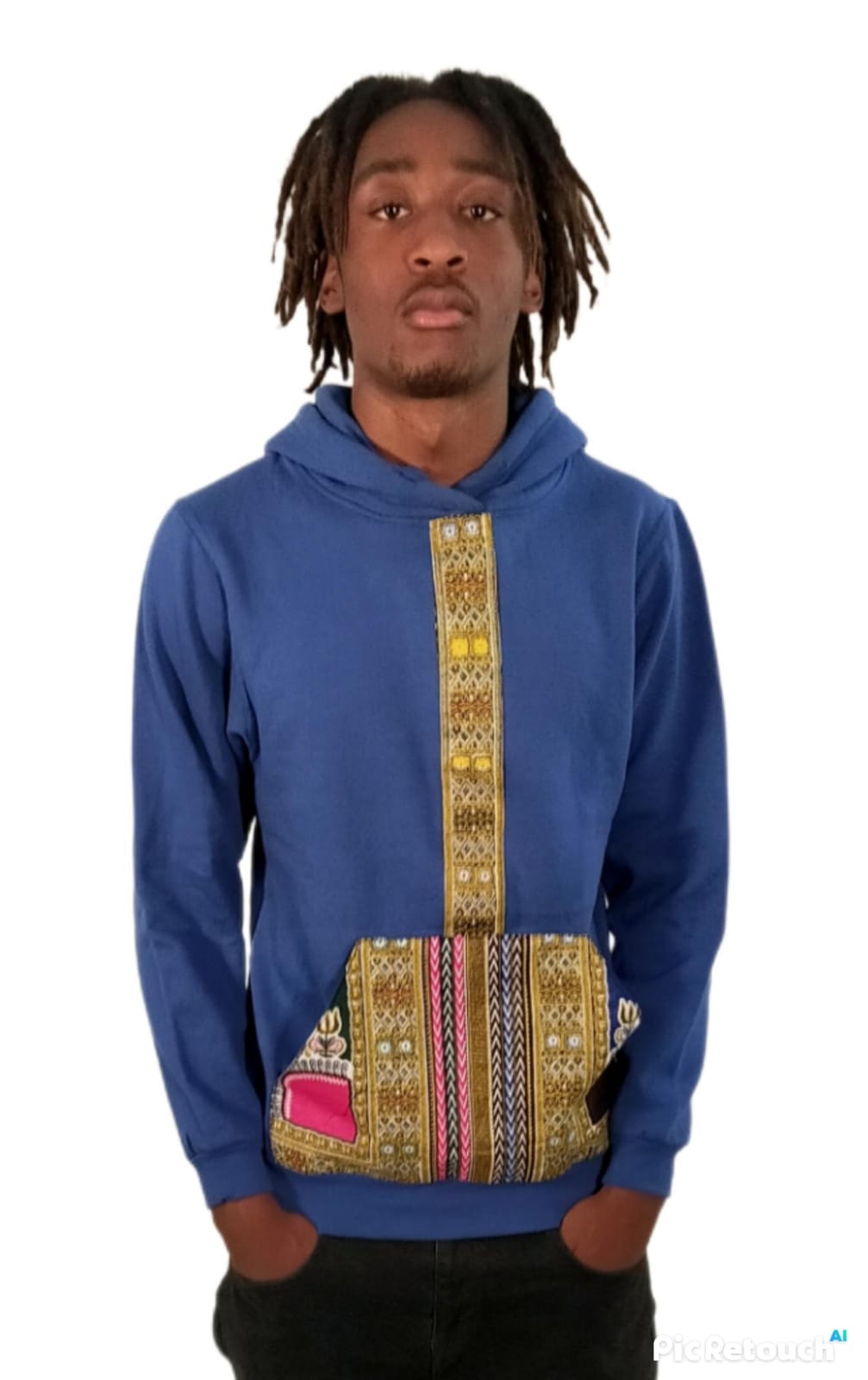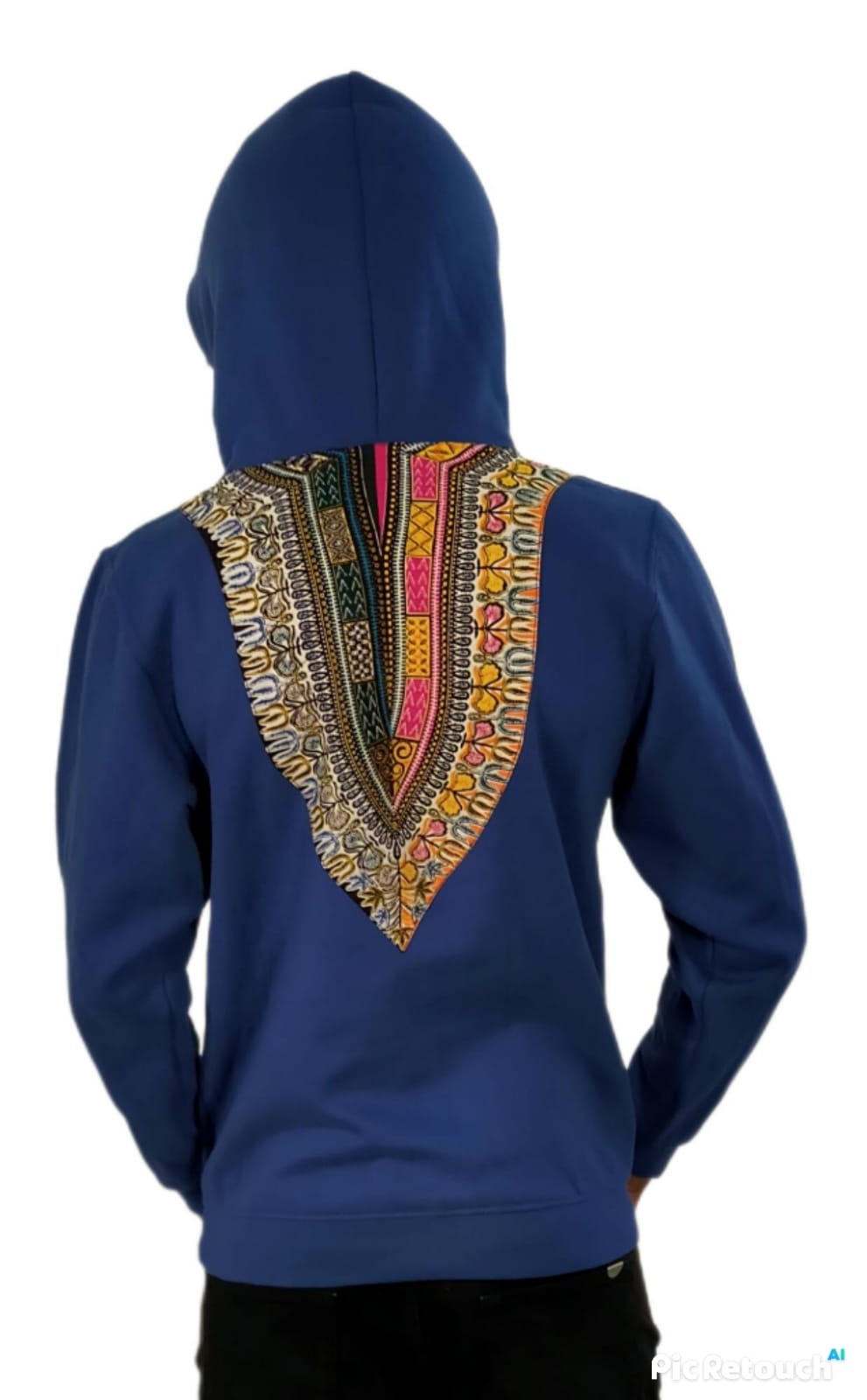 Sweat-Shirt à Capuche, Coton, Manches Longues, Hommes, Femmes, Bleu, Imprimer Africain. Lavable, Lavage en Machine.