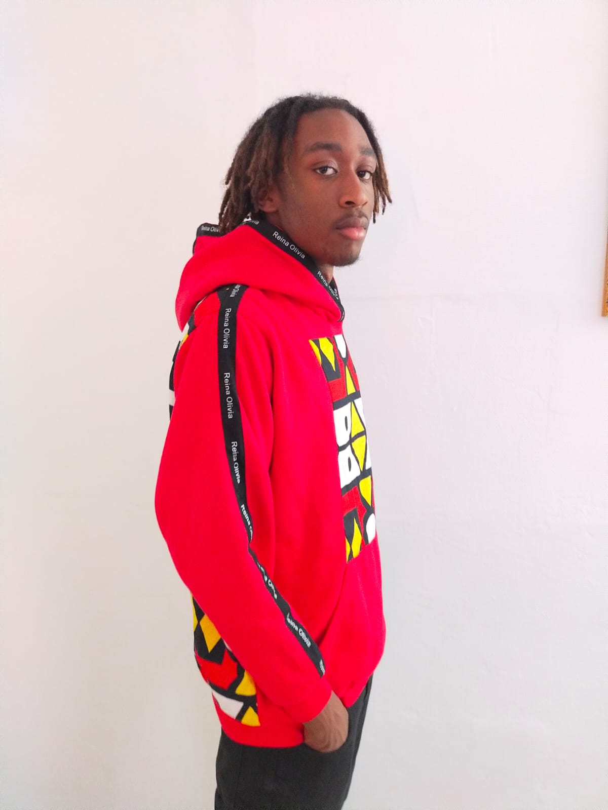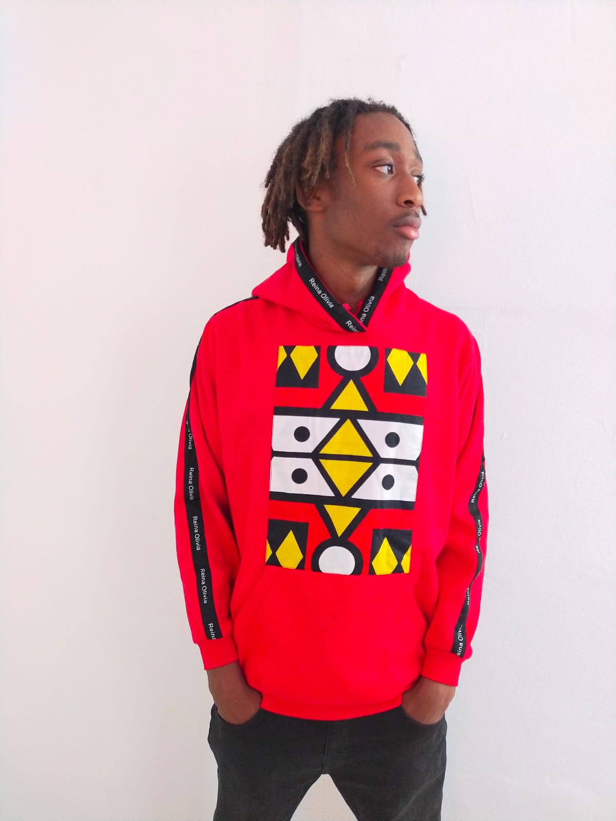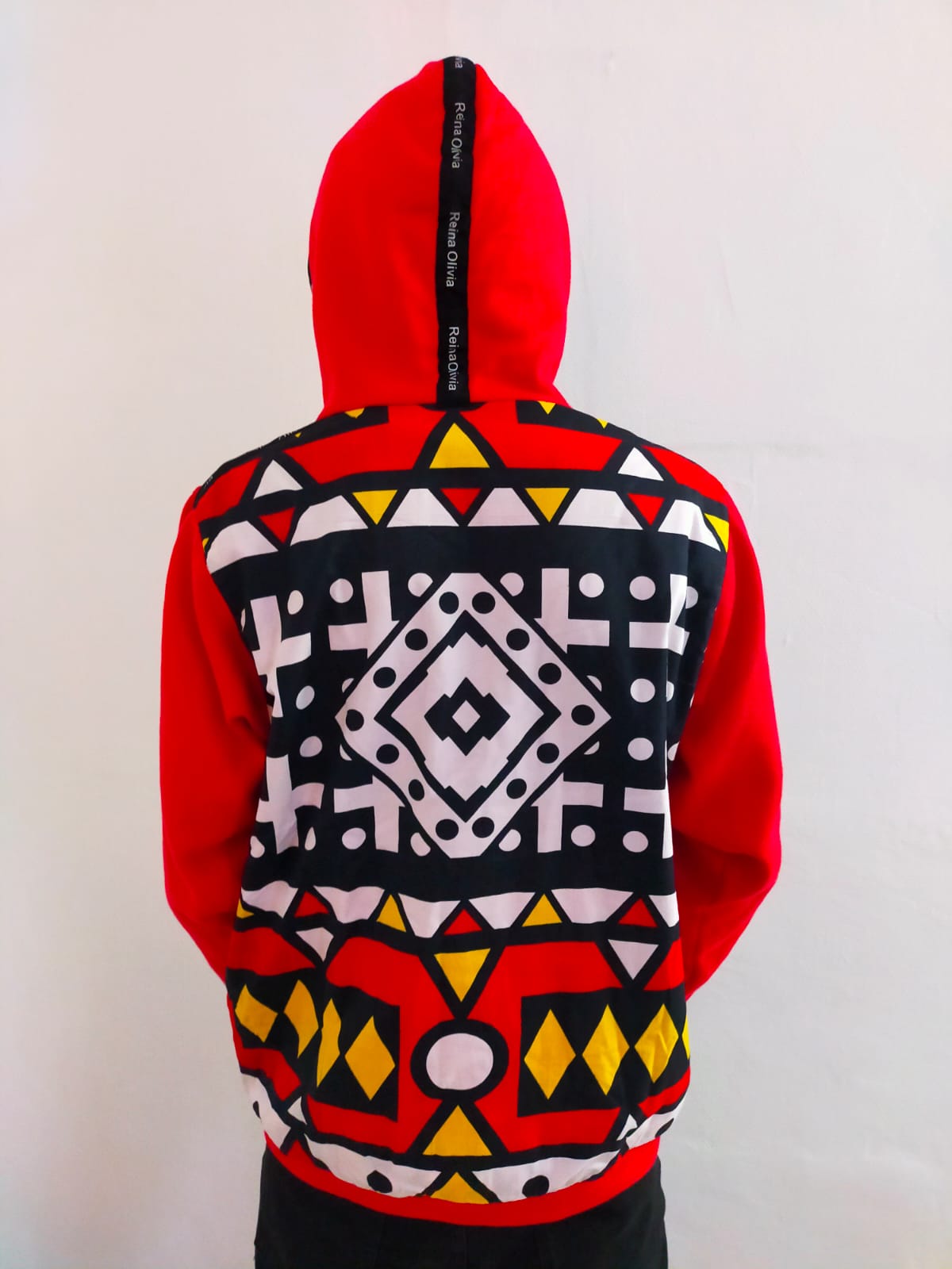 Sweat-Shirt à Capuche, Coton, Hommes, Femmes, Manches Longues, Reina Olivia, Rouge, imprimer Africain. Lavable, Lavage En Machine.