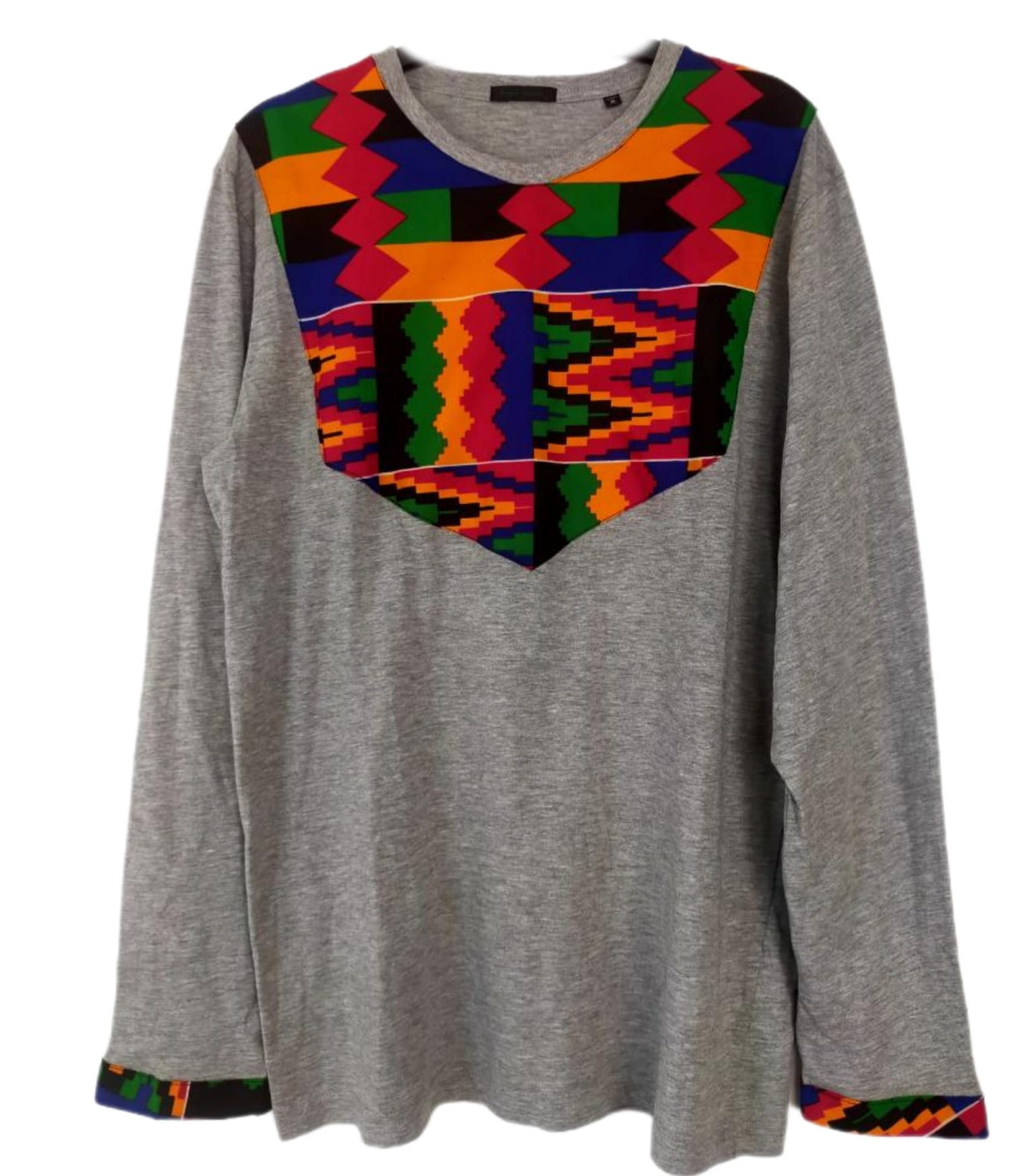 Tee-Shirt,Bio Coton, Manches Longues, Gris, Imprimer Africain.